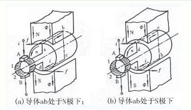 此時載流導體ab和cd受到電磁力的作用方向同樣可由左手定則判定,它們產生的轉矩仍然使得轉子逆時針轉動。這就是微型直流電機的工作原理。外加的電源是直流的,但由于電刷和換向片的作用,在線圈中流過的電流是交流的,其產生的轉矩的方向卻是不變的。